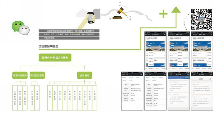 法院發揮微信新媒體信息傳播即時、操作簡便、互動性強的優勢特點,建立“人民法院”微信,打破時空限制,搭建自由便捷的溝通交流平臺。